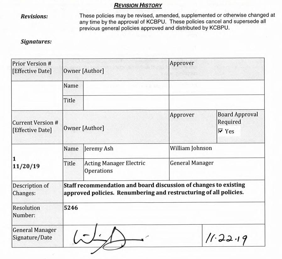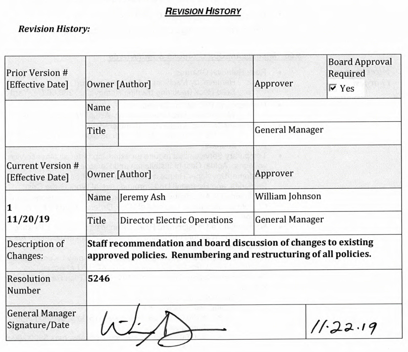 daily business of the utility. This policy applies to the creation and implementation of Large